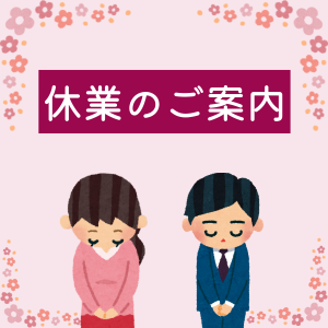 休業期間中はご不便をおかけいたしますが、何卒ご理解いただきますようよろしくお願いいたします。