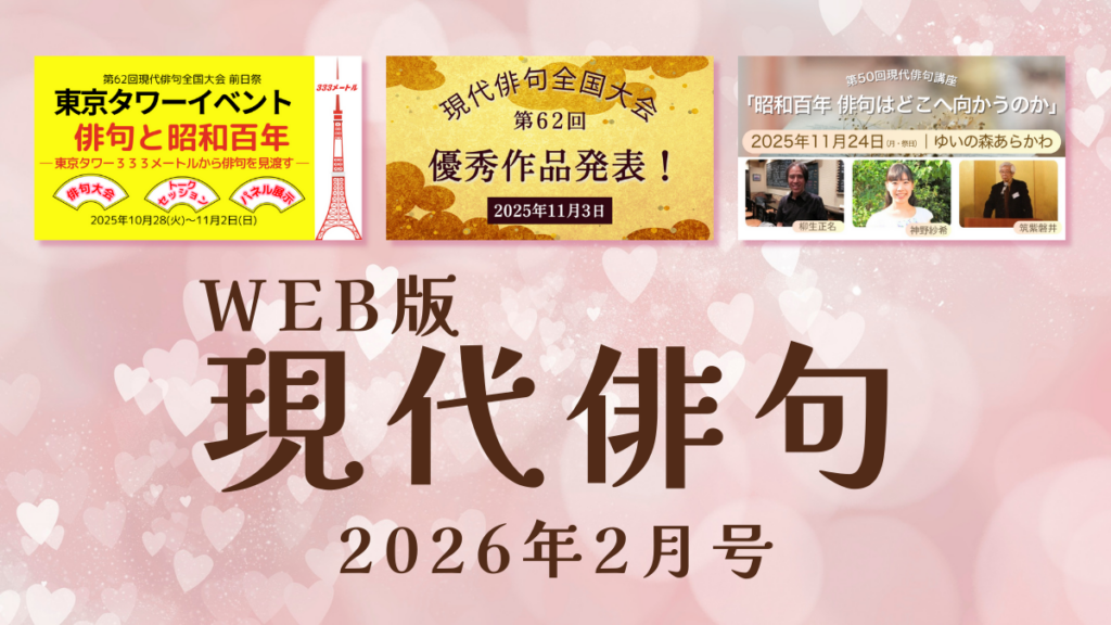 2026年1月27日 / 最終更新日 : 2026年1月28日 gendaihaiku 💁WEB版『現代俳句』2026年2月号を公開しました WEB版『現代俳句』2026年2月号を公開しました。 WEB版『現代俳句』2026年2月号はこちら ◎会員の方にはさらに詳しい冊子版『現代俳句』を毎月発行しています。 ※会員入会をご希望の方はこちら