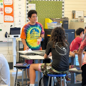 中学の6〜8年生、152人を教える日本語クラスの教師である。