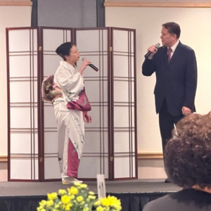 着物姿で「浪花めおと橋」を日本語で熱唱したご夫婦は、ともに弁護士。