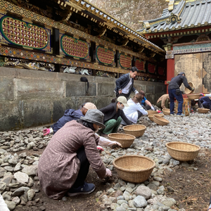 二社一寺で世界的に知られる日光山内では、毎年4月下旬に「栗石返し」と呼ばれる清掃奉仕作業が行われる。
