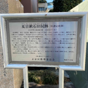 今その旧居跡には川端康成揮毫の石碑があり、敷地には日本医科大学の建物が建っています。当時の建物は見る影もありませんが、現在では愛知県犬山市の明治村に「森鴎外・夏目漱石住宅」として移築、登録有形文化財として保存されています。